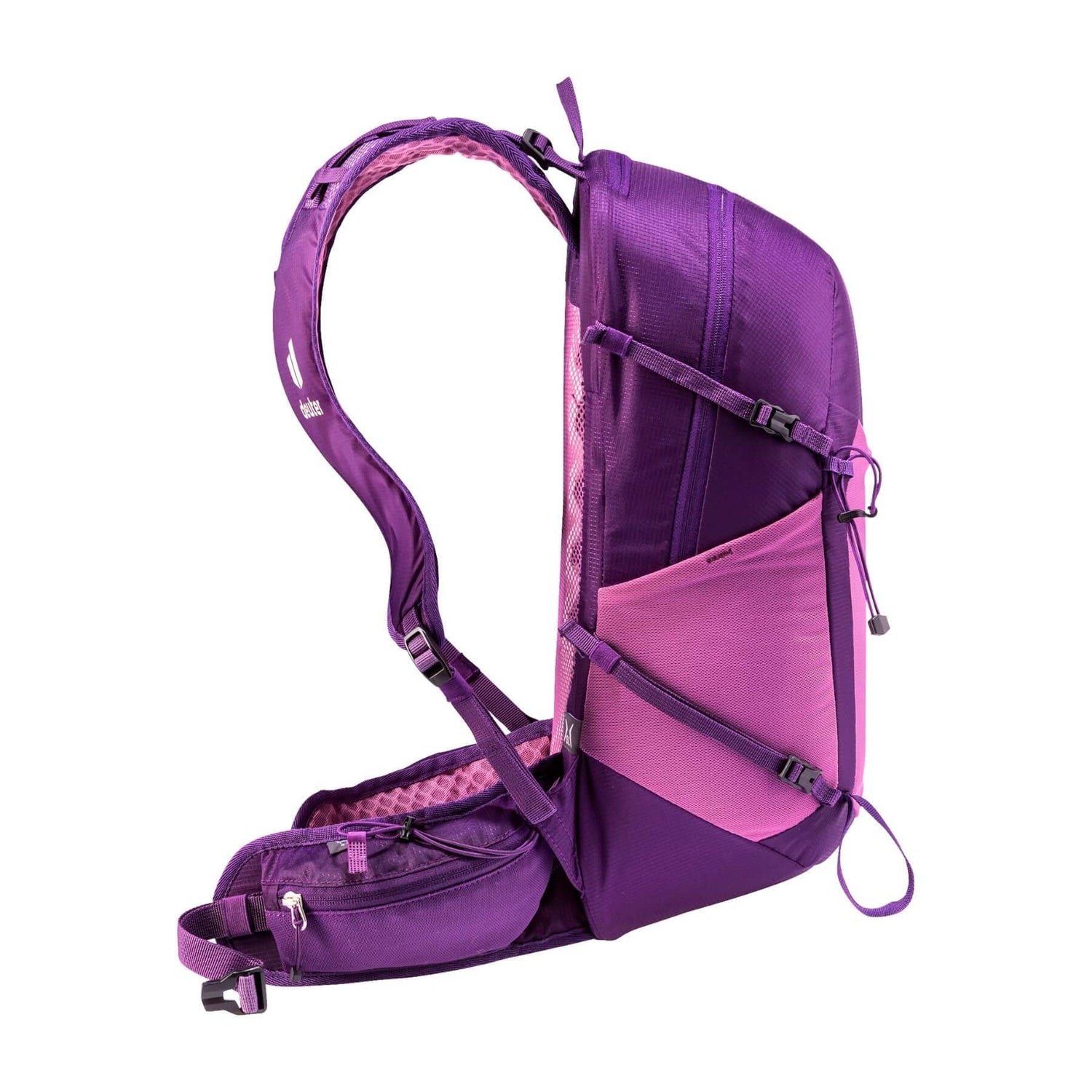 Move fast & light through the mountains – as well as comfortably – with this featherweight speed hiking backpack. Its vest-style perforated shoulder straps, supple hip fins, 2-way adjustable sternum strap and deuter LiteAir back system combine to create good ventilation and a snug, compact fit. Handy pockets on the shoulder straps and hip fins, plus quick-release pole attachments, provide fast on-the-move access without having to take off the pack.