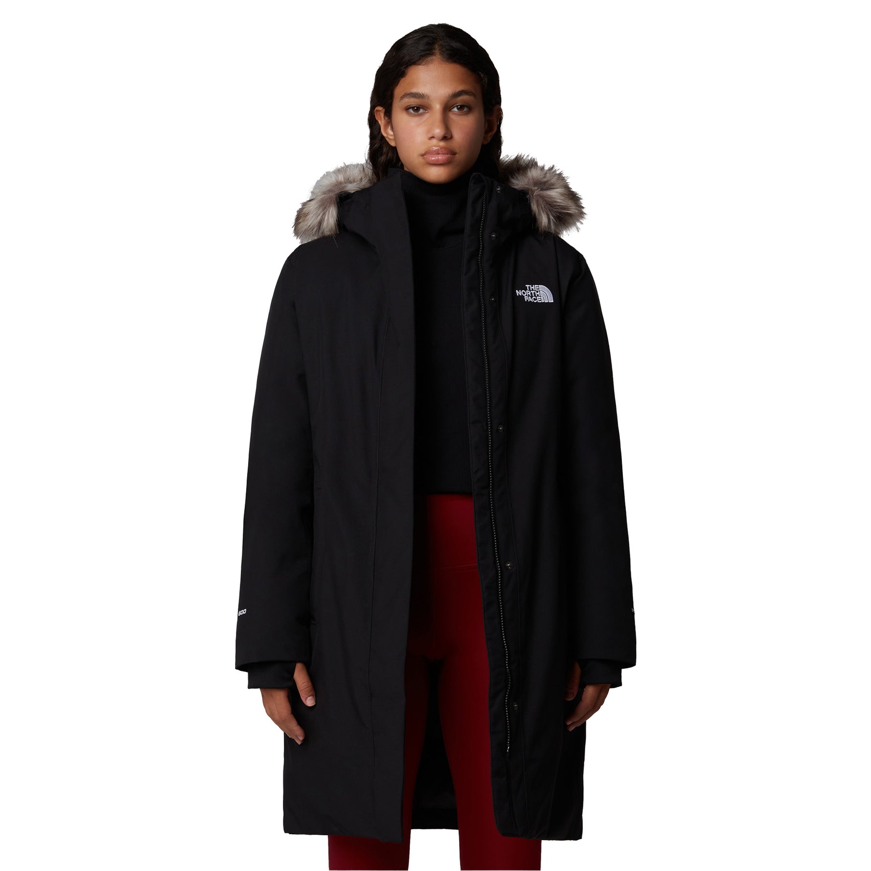 • Removable, fully adjustable hood with a removable faux-fur ruff