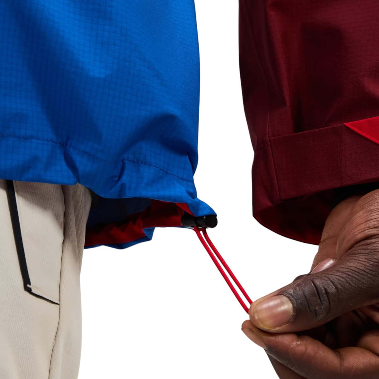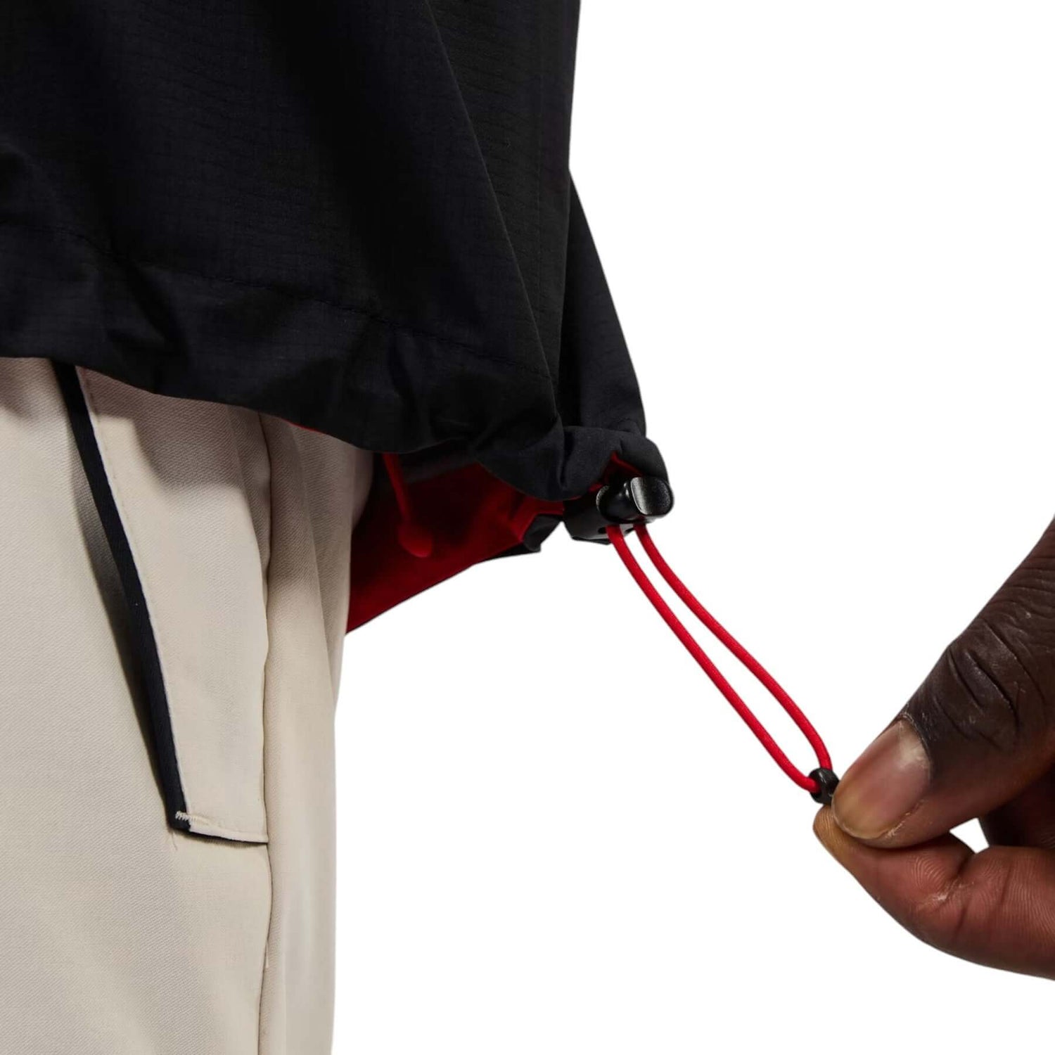 • Drawcords at the waist and hem for easy adjustment on the move.