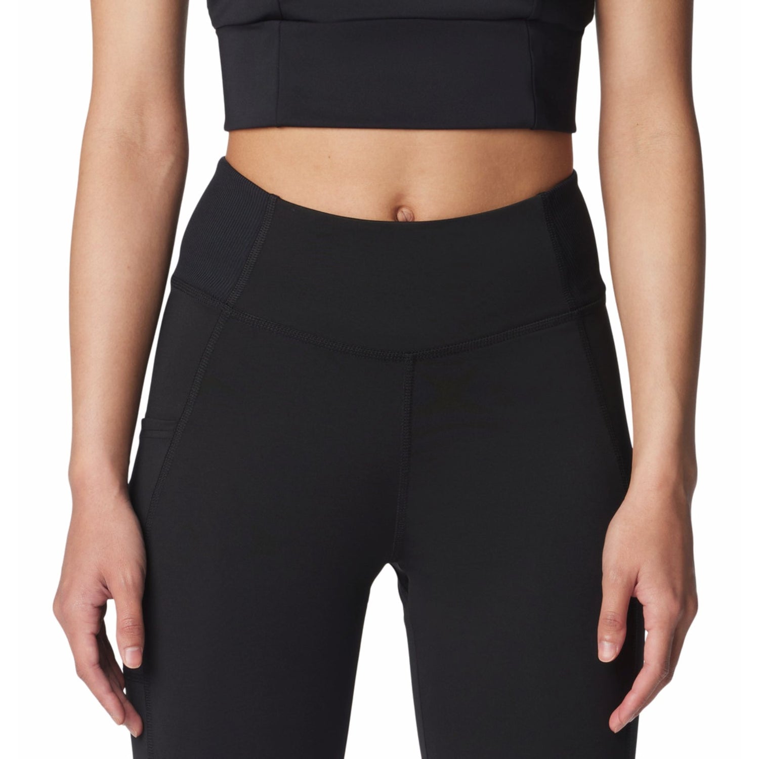 Breathable sweat-wicking half tights with a pocket.
