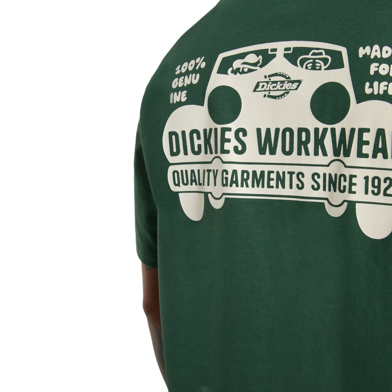 The Gordonsville mid weight short sleeve t-shirt is a comfortable tee for daily wear with a nod to vintage automotive artwork. Made from breathable, soft-touch cotton, it features a small logo on the left chest and an expanded automotive illustration on the back. It's finished with the iconic woven Dickies hem loop label.