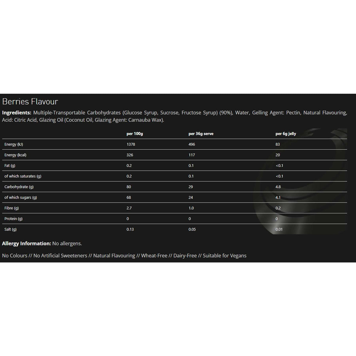 TORQ Jellies energy chew product has been carefully formulated to deliver TORQ’s unique blend of multiple-transportable carbohydrates to the working muscles extremely quickly and efficiently using research-proven 2:1 Glucose:Fructose technology.